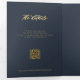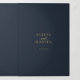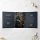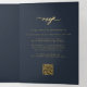 Gold navy blue photo wedding RSVP details QR code Tri-Fold Invitation