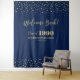 This modern tapestry is perfect for a chic navy blue and gold colour theme class reunion party. A stylish custom photo backdrop to remember your special day. The design features golden typography " Welcome Back! " with confetti background. You can personalise the graduate year, school name, and event date.