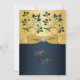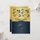 This monogrammed gold and navy blue floral wedding invitation has a PRINTED ON gold ribbon and bow with a PRINTED gemstone and diamond jewels brooch on it. The text is all customisable. The paper type is also customisable. If you require any other items in this design, please email me with your request at niteowlstudio@gmail.com