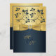Gold, Navy Floral Monogram Wedding Invitation