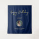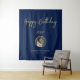 Gold & Navy Happy Birthday Photo Party Backdrop Tapestry