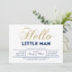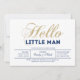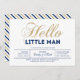 Celebrate a special day for your loved one with this modern baby shower invitation! This design features stylish typography " Hello Little Man" in glitter gold texture & navy blue.