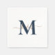 Modern Gold and Navy Monogram Cocktail Napkin. White. Combo font. Swash.