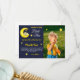 The navy and gold "Twinkle Twinkle Little Star" 1st birthday photo thank you cards are a fun and whimsical way to celebrate your baby boy’s first birthday. Featuring a cute teddy bear "over the moon" surrounded by twinkling stars and a bright crescent moon, this design brings the magic of a celestial theme to life. The deep navy background paired with gold accents creates a playful galaxy setting, perfect for a "moon and stars" or "twinkle twinkle little star" party. These cards capture the excitement and joy of a first birthday, making them a delightful choice for moms planning a special celebration.