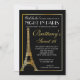 This Parisian Sweet 16 invitation featuring the Eiffel Tower with a gold glitter border is perfect for any Parisian themed party.