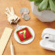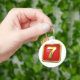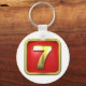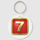 This design is a gold number seven. The number seven is in gold on a red background. This gold number seven design looks great on this Keychain