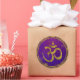 Gold OM symbol - Aum, Omkara on Purple/Indigo Classic Round Sticker