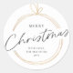 Add a touch of elegance to your holiday greetings with this personalised Christmas sticker. Featuring a minimalist gold ornament outline with a delicate bow at the top, this design exudes simplicity and sophistication. "Merry Christmas" is displayed in a blend of elegant serif and cursive fonts, with the word "Christmas" in a bold black script, creating a beautiful contrast against the white background. Customise with your family's name and the year in a classic serif font below for a warm, personal touch. Perfect for sealing holiday cards, gift packaging, or adding a festive accent to any seasonal decorations.