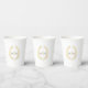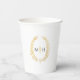 Elegant and timeless, these wedding paper cups feature a delicate gold oval leaf wreath design on a clean white background. Perfect for adding a simple refined botanical touch to your wedding reception, bridal shower, or engagement party, these stylish cups complement classic and modern event themes. Personalize with your monogram initials to create a cohesive and memorable detail for your celebration. Ideal for serving drinks while enhancing your table décor, these cups coordinate beautifully with matching items in the collection. © Original leaf monogram drawing and design by Sarah Trett for www.mylittleedenweddings.com on Zazzle.