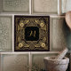 Gold Owl Compass Monogram Art Deco Ceramic Tile