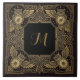 Embark on a journey of style with this captivating ceramic tile, featuring a striking Art Deco design. The intricate golden lines showcase majestic owls with compasses, symbolizing wisdom and guidance, set against a deep black background. A prominent golden monogram adds a personal touch, making it a unique statement piece for any home or office. This tile is perfect for creating a sophisticated and adventurous atmosphere, blending vintage charm with modern elegance. Its detailed craftsmanship and luxurious color palette ensure it will be a conversation starter.