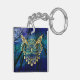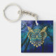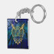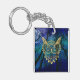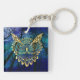 Gold Owl Face on forest at night Key Ring