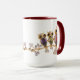 Trendy red ringer mug with cute, whimsical and beautiful digital gold owls with colourful digital jewels and diamonds sat on a gold branch. A stylish, elegant, chic, girly fashion gift for women, teenage girls and kids and anyone who loves owls. Please note: All products on the Zazzle website have flat printed images. If you need any assistance customising your product please contact me through my store and I will be happy to help.