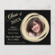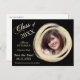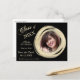 There's an elegant gold paint brushed circle frame for your photograph on the right side of this "Save the Date" graduation announcement, with your custom text in matching gold at the left. Everything is placed on a dramatic black background. The back of the card has an additional text field if needed. All the text on the front is also easily customised.