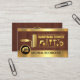 An exquisite brown timber cover is encapsulated by gold stripes at the upper and lower rims of the card. It features a gold paint brush painting out a set of gold handyman tools. Here lies the business name "HANDYMAN SERVICE" which you can change, in faux gold. At the base is a gold home landscape logo you can use alongside your prestigious name.
