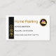 A minimalist design with a vertical black striped layer on the left side of the card. It houses a set of faux gold painting buttons that contain your contact details or captions. At the top lies the business name "Home Painting" which you can change alongside a gold "home-paint fan" logo you can use.