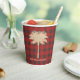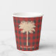 A gold faux foil palm tree and your name in chic lettering are featured on these red and grey buffalo plaid pattern paper cups, perfect for warm weather entertaining. MATCHING items in our store.