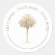 Round Sticker with classy gold palm tree image. Perfect for travel industry.