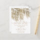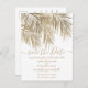 Modern gold palm tree elegant save the date. Modern simple faux gold palm tree with simple typography, a trendy and tropical save the date wedding theme on palm tree leaf.