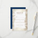 Beach wedding rsvp cards with gold palm leaf and navy gold glitter backside