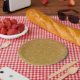 Gold paper plates | faux sparkly and glitter print. Disposable dinner party supplies printed for elegant wedding, birthday, bridal shower, christmas etc Strong quality for adults and children. Printed sparkles and glimmers.