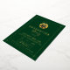 Gold paramedic EMT Class of 2025 green graduation foil invitations. Celebrate the outstanding accomplishment of your Class of 2025 paramedic graduate with these personalised emerald green invitations adorned with gold foil details. These invitations are a heartfelt recognition of the graduate's dedication and resilience in the demanding field of emergency medicine. The iconic gold Rod of Asclepius, a traditional symbol of the paramedic profession, prominently highlights the graduate's chosen career, while the refined gold borders gracefully converge at the corners, adding a touch of elegance to the overall design.