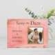 Modern gold and peach, melon abstract “Save the Date” with photo. Brown font. Perfect for any season. I love this “Save the Date” card. Elegant watercolor colours.