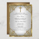 Gold Pearl Damask & Cross Baptism/Christening Invitation