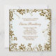 Elegant white and gold flower swirl vines overlay with pearl jewel trim woman's fiftieth birthday party invitation.