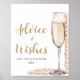 The Gold Pearls and Prosecco Advice and Wishes Sign is a sophisticated and elegant addition to any bridal shower or wedding celebration. With its luxurious design featuring gold pearls and prosecco champagne, this sign provides guests with a beautiful opportunity to share their heartfelt advice and wishes for the happy couple. Whether displayed on an easel or framed on a table, it serves as a stylish focal point while encouraging guests to offer their words of wisdom and love. This sign not only enhances the ambiance of the event but also creates a meaningful keepsake for the newlyweds to cherish for years to come.