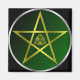 A gold pentacle/ pentagram on a green background with a triqueta in the heart of the pentacle. Gorgeous. The pentacle and triquetra have long been symbols of the Wiccan belief system and of the neo-paganism.