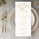 Bring timeless elegance to your event with this gold "Perfect Pear" bridal luncheon menu card. Featuring classic pear artwork framed by delicate florals and a sweet hummingbird, this tall, sophisticated design is ideal for showcasing your luncheon or bridal shower menu. Personalise all text, fonts, and colours to perfectly match your event style.