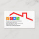 Overleaf, the white cover has a red roof design. Card details are over on the left with a handyman tools icon logo you can use placed at the top. The tools can represent some of the services that you offer e.g. the drill-measuring tape can represent construction, home repairs etc. Underneath this is the business name, its contact details and a slogan caption option.