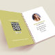 This design features a business professional notebook template, with a minimalist style, add your logo or photo, with a modern simple style, perfect for corporate company office supplies, with a QR code and social media icons, you can easily your logo here or photo, makes a great gift, with a gold and white design