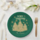 Gold Pine Trees Gold Snowflakes Paper Plate
