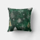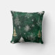 Gold Pine trees Silver Snowflakes Hunter Green Cushion