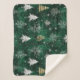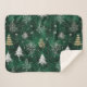 Gold Pine trees Silver Snowflakes Hunter Green Sherpa Blanket