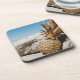 Brighten your day with Sunny Beach vibes. Gold pineapple sunbathing on the beach.