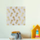 A tropical pattern of pineapples covered in a shiny gold texture. The pineapples are placed on a very light grey background. They are drawn with a mosaic technique for a modern look. This print has all the feelings of a tropical resort, but the subtle gold look gives it a classy, chic feel.