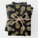 Three sheets of wrapping paper feature gold pineapples on a black background (or any colour you choose). MORE colours in our store.