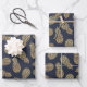 Three sheets of wrapping paper feature gold pineapples on a navy blue background (or any colour you choose). MORE colours in our store.