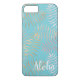 Gold pink aqua tropical leaves personalised aloha iPhone case