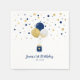 Add a personal touch to your special day with this cute boy Birthday Paper Napkin! This design features stylish balloons and a mason jar with confetti in gold & navy blue. You can customise the text to any event or different age. More matching invitations and party supplies are available in my shop BaraBomDesign.