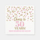 Customisable napkins for 50th birthday party with gold and light pink glitter confetti.