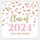 Custom name class of 2024 graduation stickers with gold and pink confetti pattern with modern lettered style text.