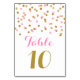 Glamourous and chic table number cards in light pink and gold confetti pattern. Customise these cards with your table numbers for a special addition to your wedding tables. Also suitable for birthdays and anniversary parties. (please note glitter effect is print only)