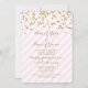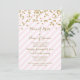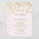 Custom template engagement party invitations in light pastel blush pink and white stripes pattern with gold colour confetti and handwritten style text. Fully customisable with your engagement party details. Also available in a wide range of matching wedding products.