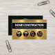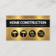 Cover features a gold card with a black stripe layer at the top. ; Here lies the business name and its contact details. Just below this are four creative gold icons. The icons can represent some of the work that you might offer e.g. the gold hammer is construction and/or renovation works, the roller brush is for painting, the power plug for electrical service and lastly the leaking pipe icon is for plumbing work.
