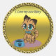 Gold playful fluffy cute kitten with cat eyes classic round sticker