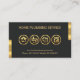 A dark grey cover is accentuated by a pair of gold tabs at the upper and lower corners of the card. Towards the centre are four gold plumbing icons that represent some of the services you might offer. i.e. the gold home for home plumbing, the gold pipes for pipe repairs, the gold tools for service and the fourth is for the equipment or machines repairs. However, each icon is left to your own description.